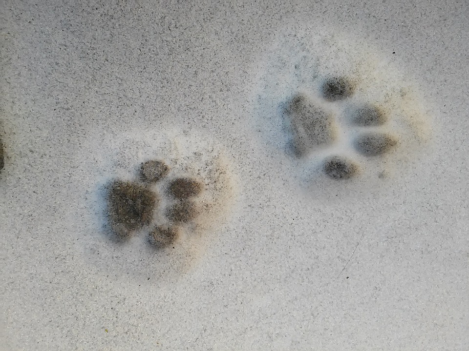 For once, I can see what the dogs “see” with their noses. They avidly follow a line of smaller, clearly feline, prints, and I wonder whether they are actually sniffing or looking, and guess at the former, as the power of our senses are opposite, at least to the best of my understanding.